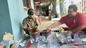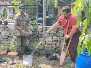 Agung Nur Wibowo, Ketua KDD Desa Purwosuman sekaligus praktisi pertanian organik memberikan pemaparan teknik pembuatan media tanam yang baik, serta pengolahan Eco Enzim dari fermentasi buah-buahan sebagai alternatif pengganti pestisida kimia yang ramah lingkungan dengan memanfaatkan limbah rumah tangga seperti galon air mineral, kotoran hewan, sekam yang diperoleh dari lingkungan rumah.